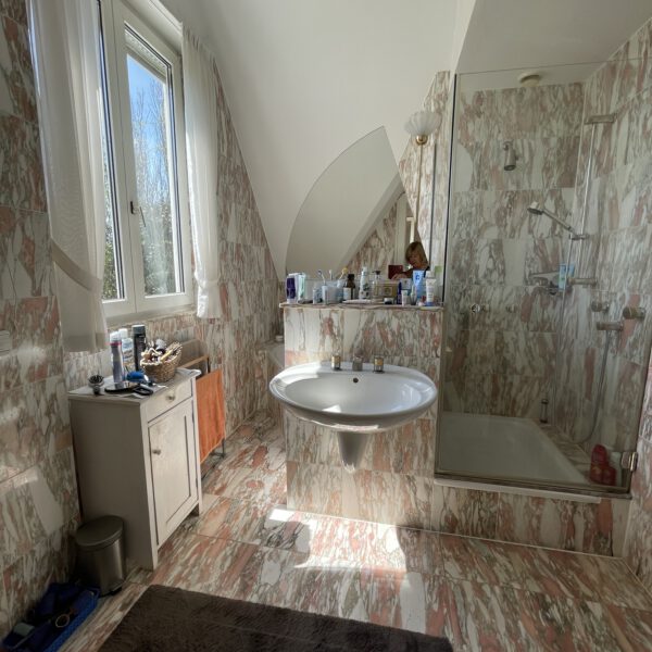 2.Obergeschoss, Großzügiges Masterbedroom mit Ensuite Bathroom mit Wanne, Dusche, WC und Waschbecken sowie Fenster. Einzigartiger Rosen-Marmor aus Norwegen. Ankleide, Ausgang zur sonnigen Dachterrasse. Ein weiteres Schlafzimmer mit Dachterrasse und Zugang zum eigenen Bad mit WC, Waschbecken, Fenster und großzügiger Dusche. Wohnliche Vinylböden (2015) in den Schlafräumen mit Fußbodenheizung.